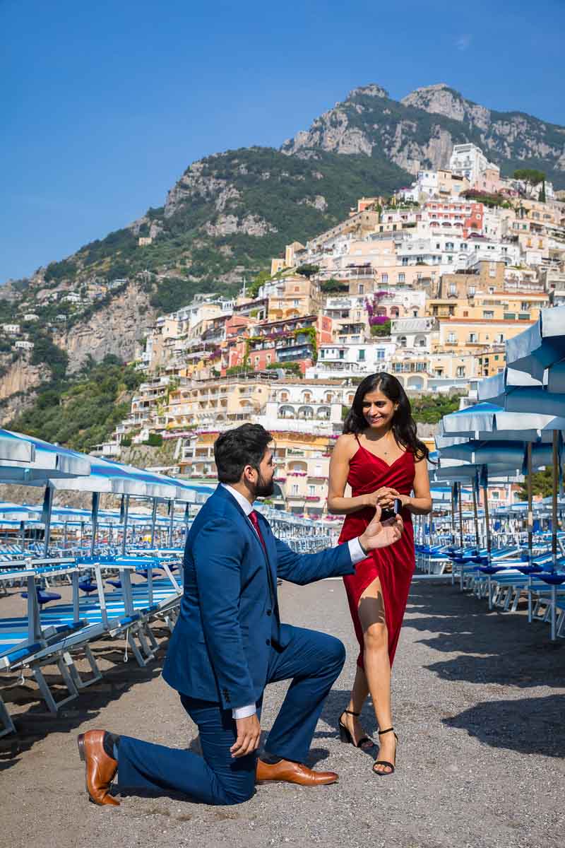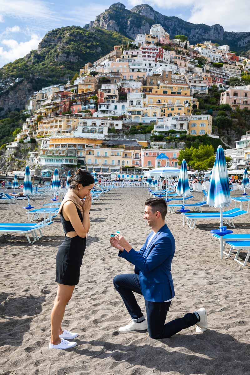A few days before the day. We will be on a look out for the weather forecast. In order to check to see if there will be any issues with possible rain. Allowing us to plan the Amalfi coast proposal in Positano with a contingency plan. Should it be needed. Ready to reschedule or relocate to a different place if need be.