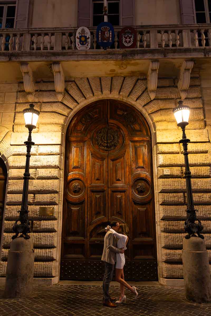 What a unique Rome Photoshoot this was! Starting in the early AM and meeting directly in Piazza di Spagna. So early that we can consider this a night photography session! Where it was still dark out and nobody was truly around! As we were walking towards Piazza di Spagna. We noticed an interesting doorway to use as background. Lit by two side light poles. Giving it the perfect photography lighting setup! So we took our initial portrait photos there.