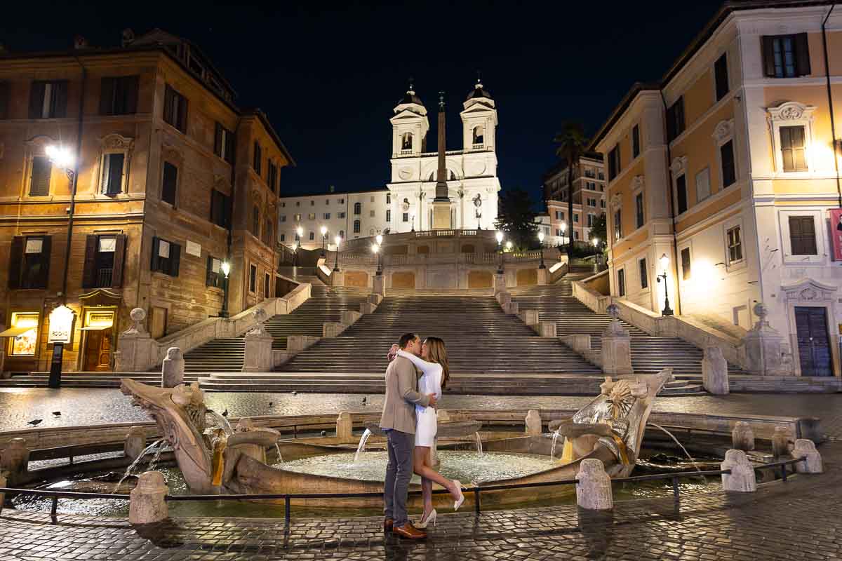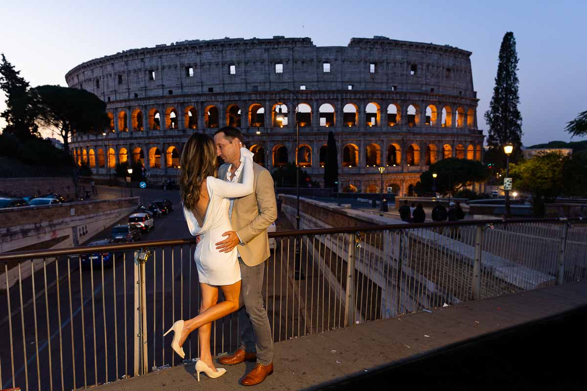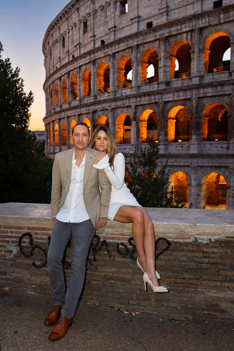 Starting the Rome Photographer session soon after by the Spanish steps. Right in front of the magnificent staircase with church Trinità dei Monti on top. The lighting in Via Condotti in this case provided to light the scene! Then we moved up the stairs to reach the different plateaus. Taking some interesting pictures playing with the different geometries that the staircase creates if you look at it sideways! Then we found this great spot that was also well lit to pose for some final portrait pictures in this location. With the car waiting for us to take us to the next photoshoot location at the Colosseum!