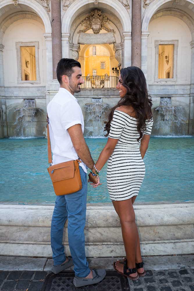 Then it was easy from there! We continued with the engagement photos in around the area including the breathtaking Fontanone water fountain and the exceptional view of the city of Rome also from there. We continued by descending on foot towards the Trastevere quarter to continue with our engagement session all the way down to Piazza Trilussa where our photography session concluded.