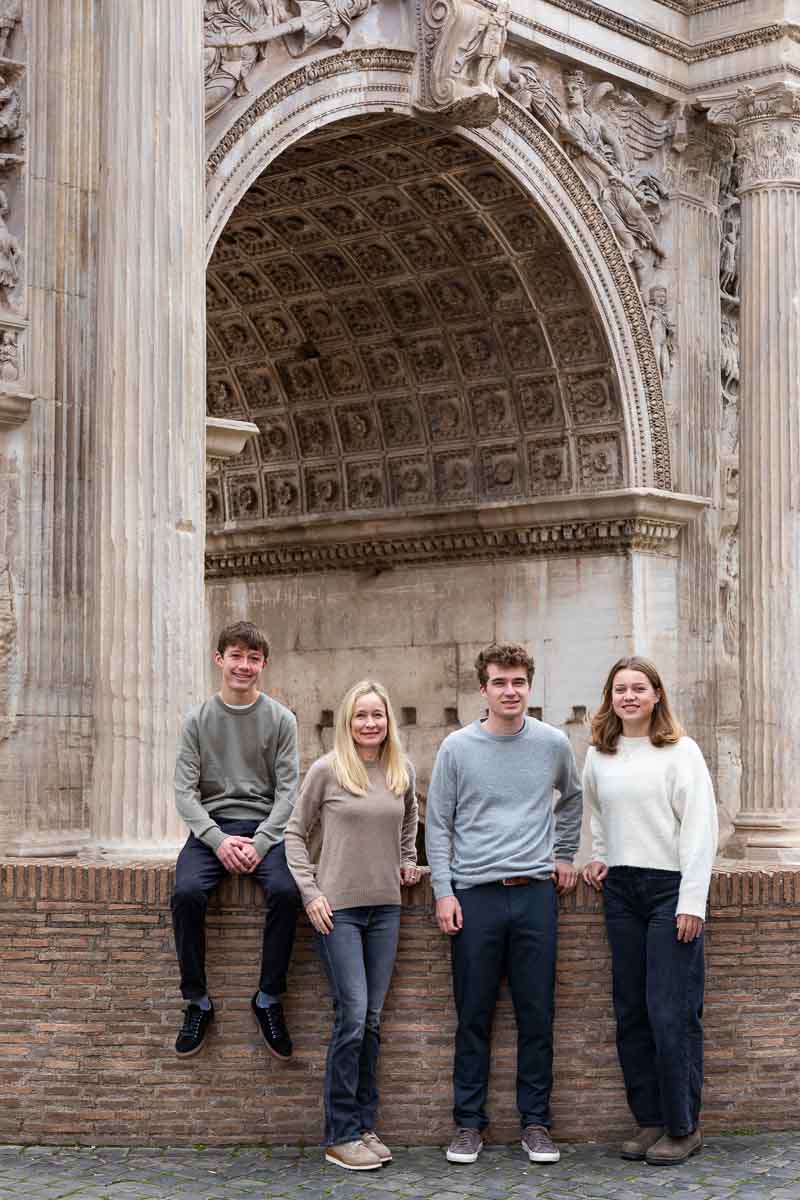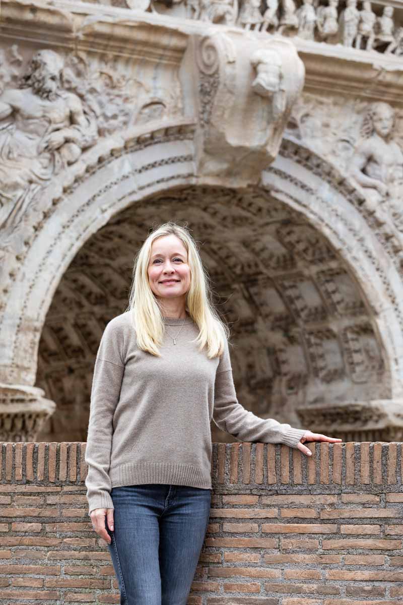 This was a great photo session in Rome! Taking place at Piazza del Campidoglio. Which offers endless photo opportunities! Perfect to get some wonderful portraits. We started with the spectacular view over the ancient Roman Forum from one of the terraces above which have a truly exclusive view. Taking different angles views on the ancient ruins. Then we walked all the way down to the street level. To continue with some unique portraits taken by the Arch of Septimius Severus. Using it to create an awesome picture frame around the portraits.