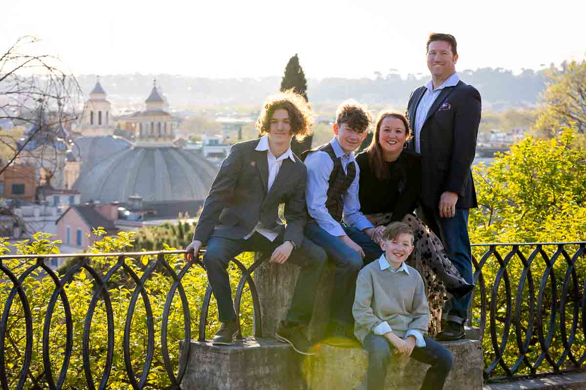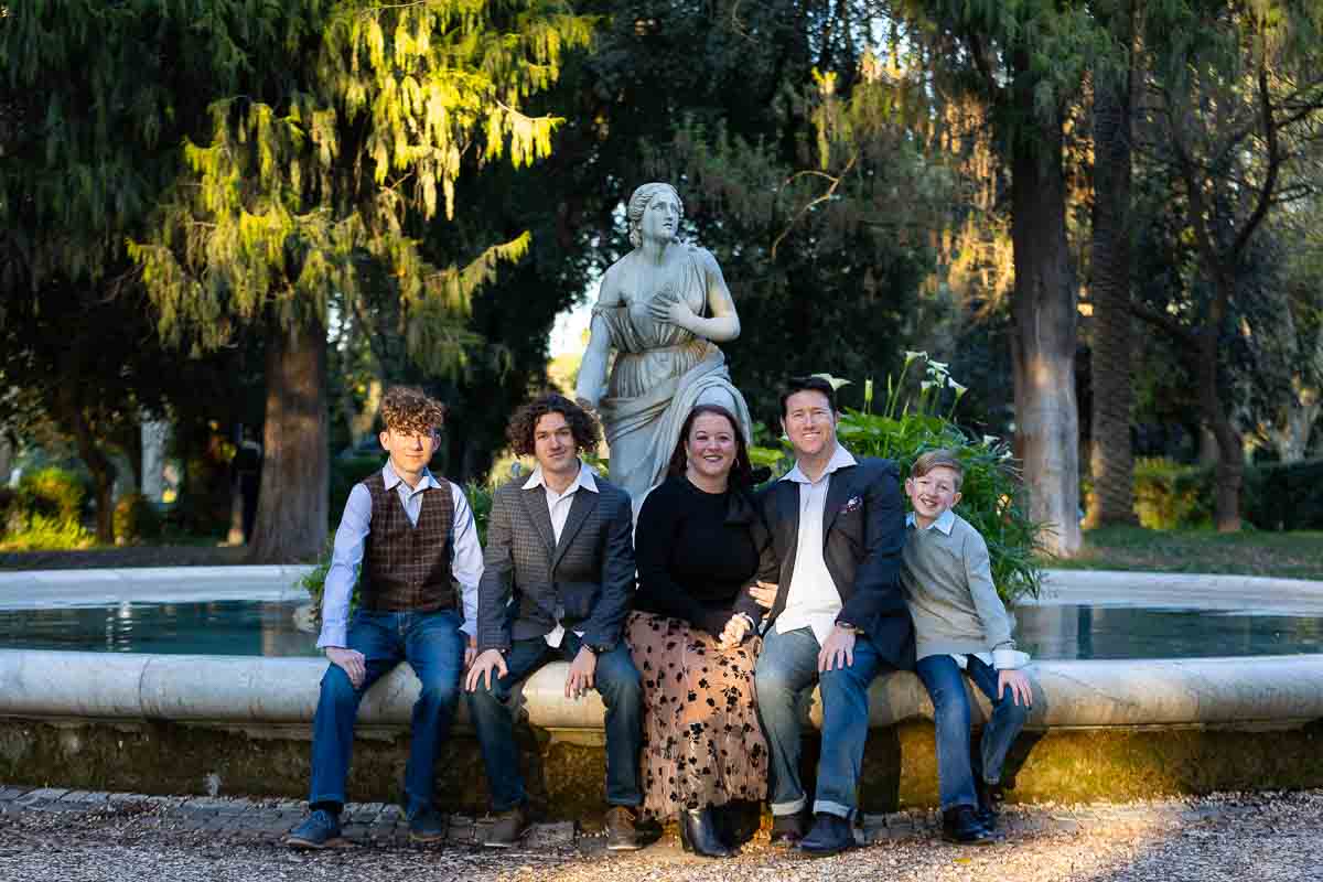 After alternating group snapshots with individual portraits together with some kids shots. We then took some nice family walking photos while headed for out next location. Which was a circular water fountain found inside the Villa Borghese park. Then ended the photography session with a last set of pictures. Taken from an adjacent terrace but with a different view over the roman cityscape!