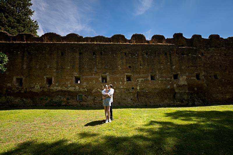 The Orange Garden is a beautiful location with a sweeping view over the roman cityscape. However it is not an easy place to shoot due to the fact that in the summer time it is often very crowded. This said a cone of light opened up in the left corner of the terrace for this romantic wedding proposal! Making it the perfect moment to ask the big question! Which was welcomed with a joyful yes! Then we moved around the park to take some more engagement pictures here and there. Capturing some nice unique and romantic photos!