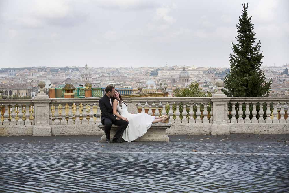 We met on the Vatican side of Rome and used a car service to enter the city to start our honeymoon photo session. As we were driving in we took the opportunity to photograph Saint Peter’s dome from the unique perspective of Via Piccolomini. A strange effect that sees the dome get larger and larger as you pull away from it. Smaller and smaller as you get closer. With the right lens the effect and be replicated in photography as in the image you can see below.