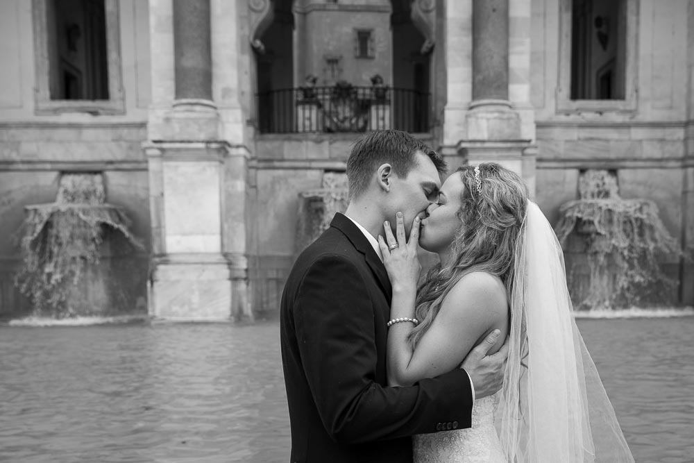 In the beautiful city of Rome. Beginning with a romantic wedding photo shoot right in Saint Peter’s square. Under the spectacular colonnade and into the main square. Taking unique portrait pictures by the water fountain and under the Basilica.