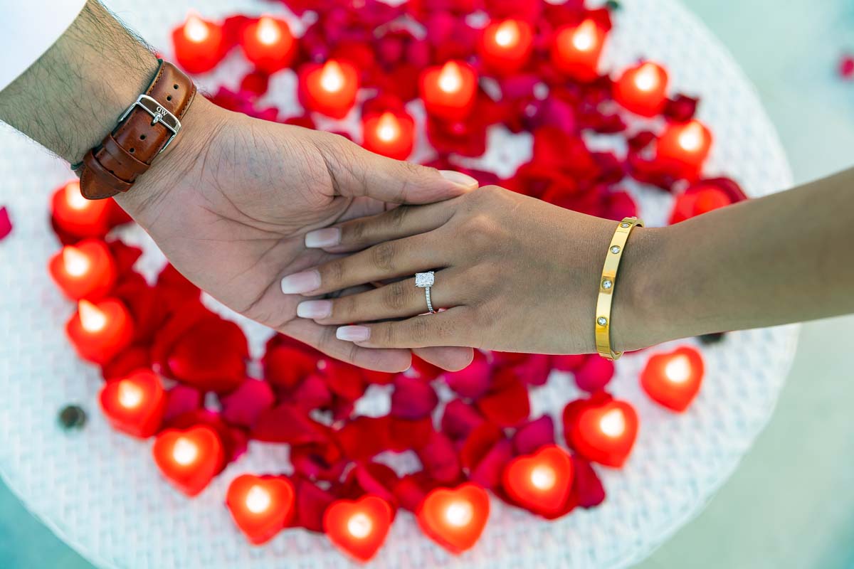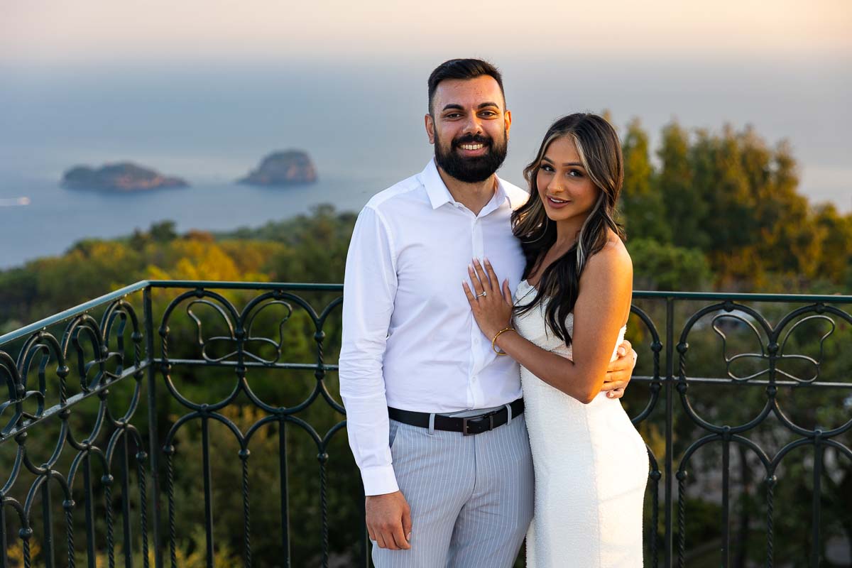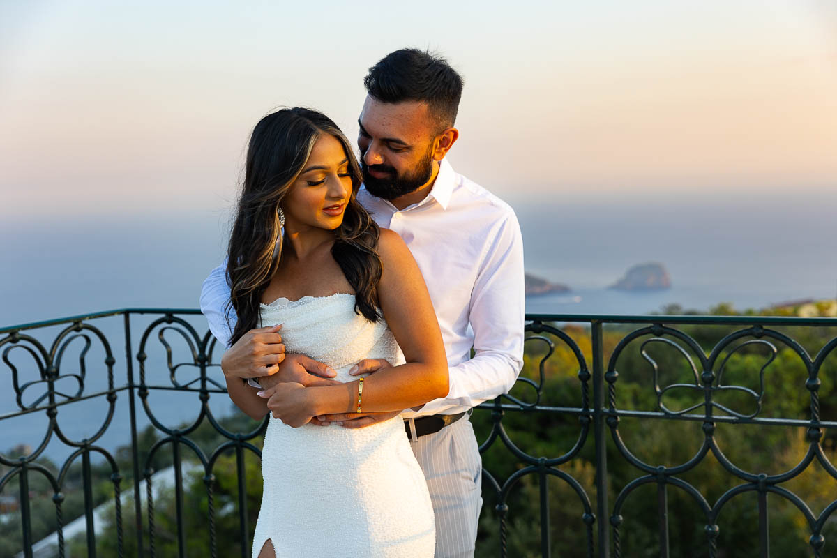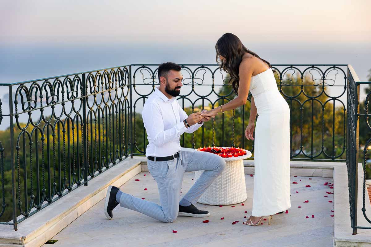 What an amazing Amalfi coast proposal photographer session overlooking the beautiful Sorrentine Coast. Which is found on the other side of the Amalfi coast. Taking place in the beautiful Nastro Azzurro & Occhio Marino Resort. On an amazing semi private terrace with a view over the coast and the sea. Walking up to it and finding a corner table set up with rose petals and red heart shaped candles. A very suggestive view for asking that one special question! With the Amalfi coast photographer at a distance to record this once in a lifetime moment in wonderful photographs. Then after the faithful yes! we popped opened a bottle of prosecco to celebrate! And continued on with some more candid photos as well as some nice posed portraits overlooking the view at sundown.