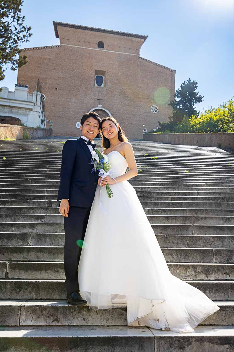 Finally we stopped over on the Ara Coeli staircase. To capture some final portrait pictures before reaching our accommodation, our final destination, where the pre matrimony photoshoot came to an end. For more photos in order parts of Italy check out this beautiful roman wedding photo session!