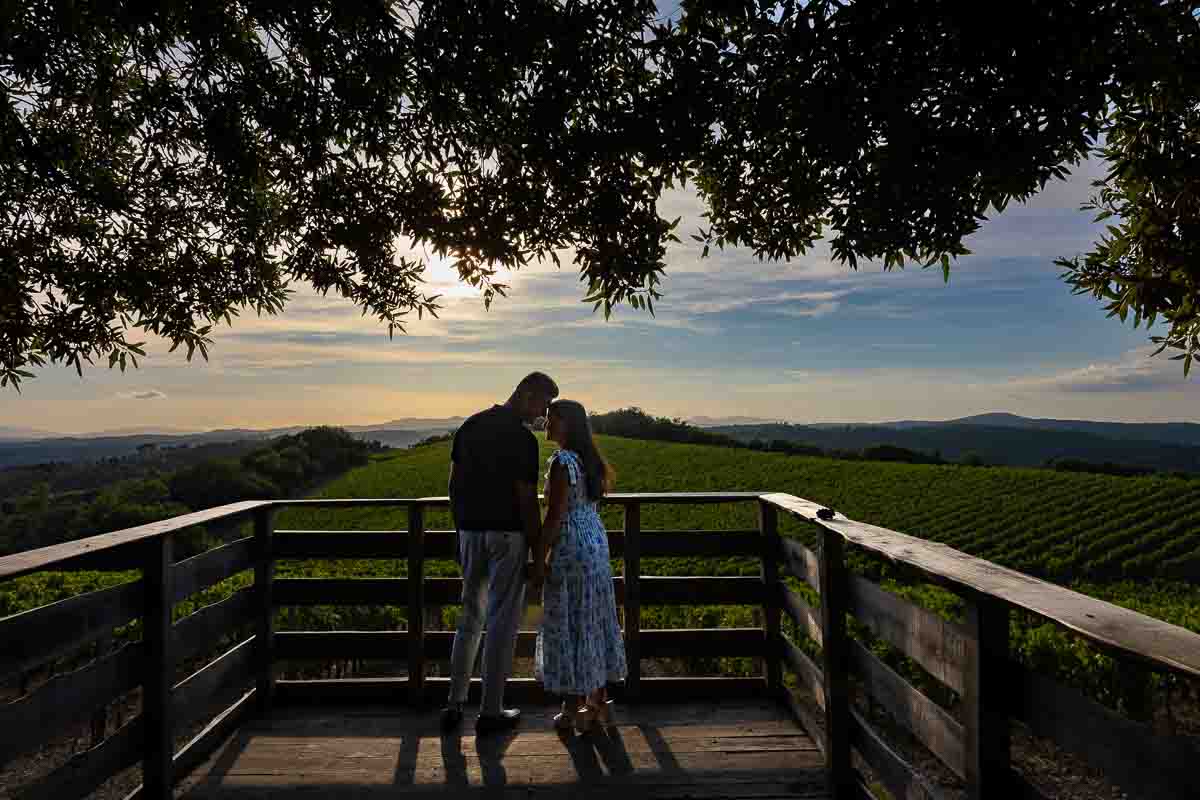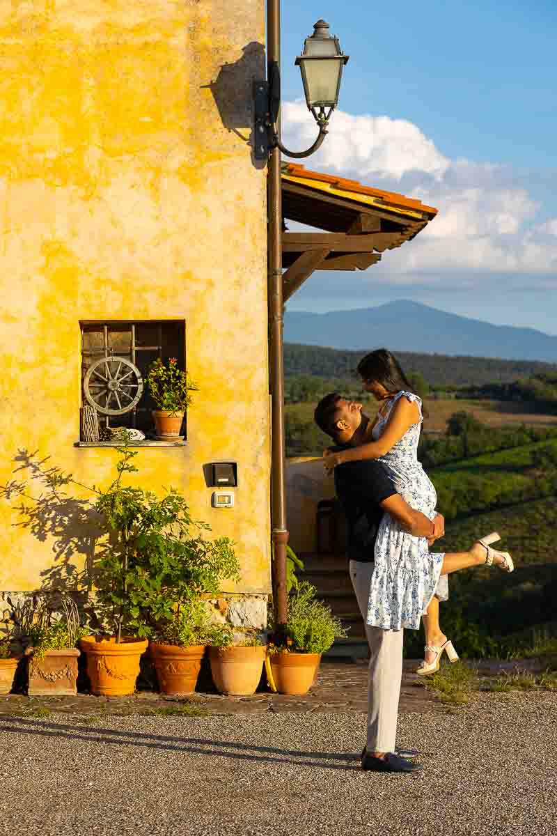 Proposing in Tuscany overlooking the beautiful tuscan countryside from the town of Panzano in Chianti