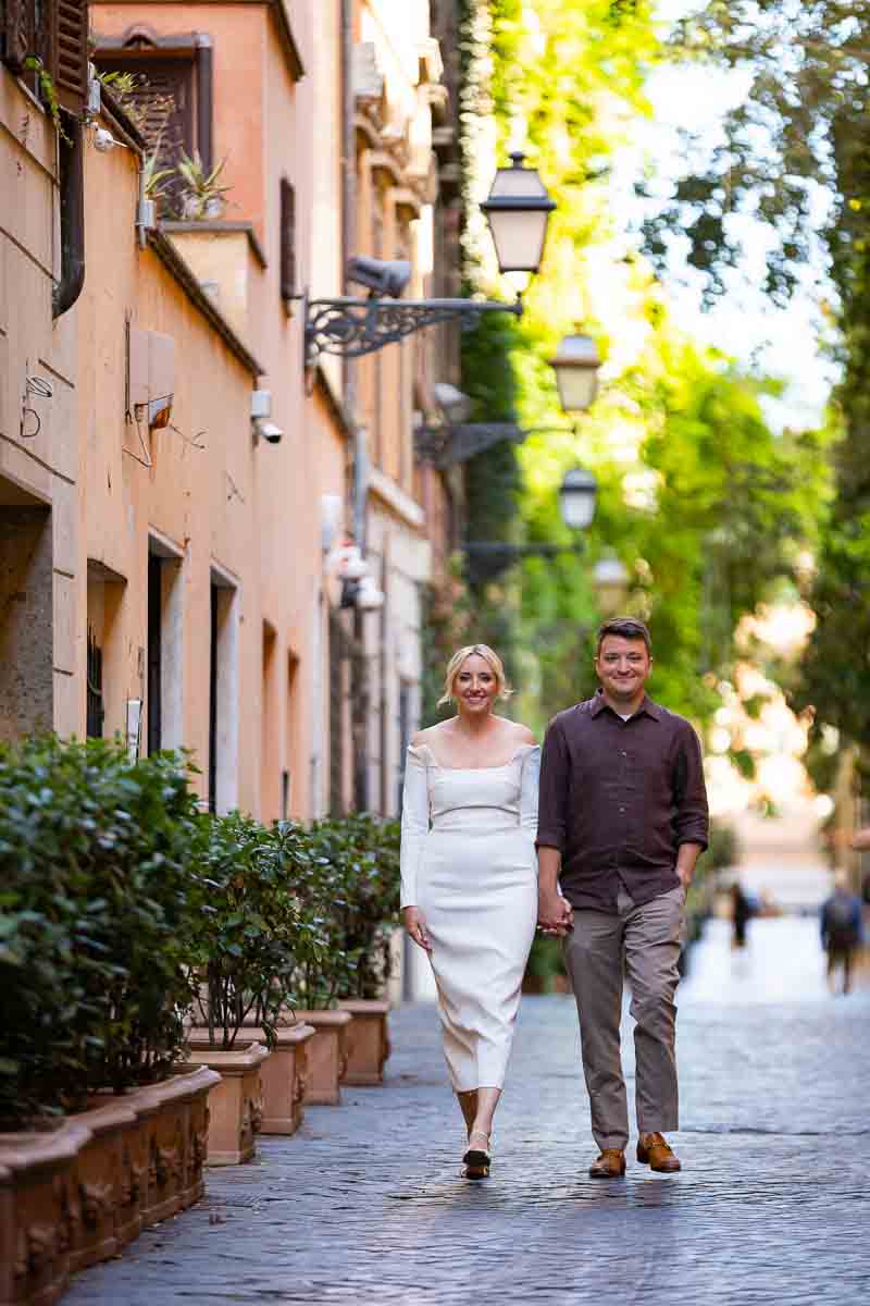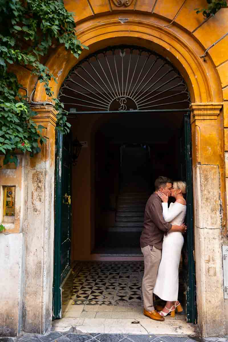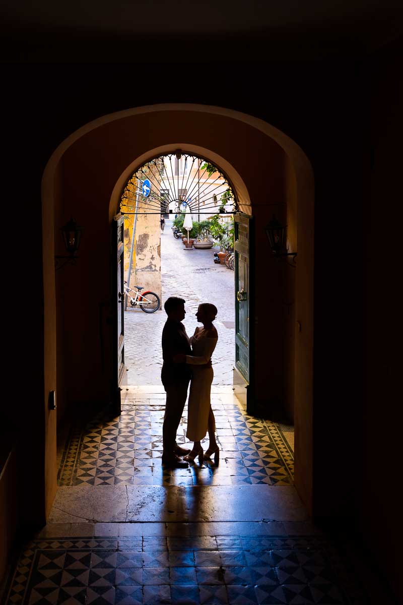 Snapping some final Rome Engagement Pictures in Via Margutta. A street made famous by its beauty but also from the 1950s film Roman Holiday with Audrey Hepburn and Gregory Peck. Walking it from one end to another searching for some nice angle views. And finding some really nice couple photos of walking around. Recieing a very special tip from an old lady at the window! On a beautiful interior building which came out just great in black and white photography!