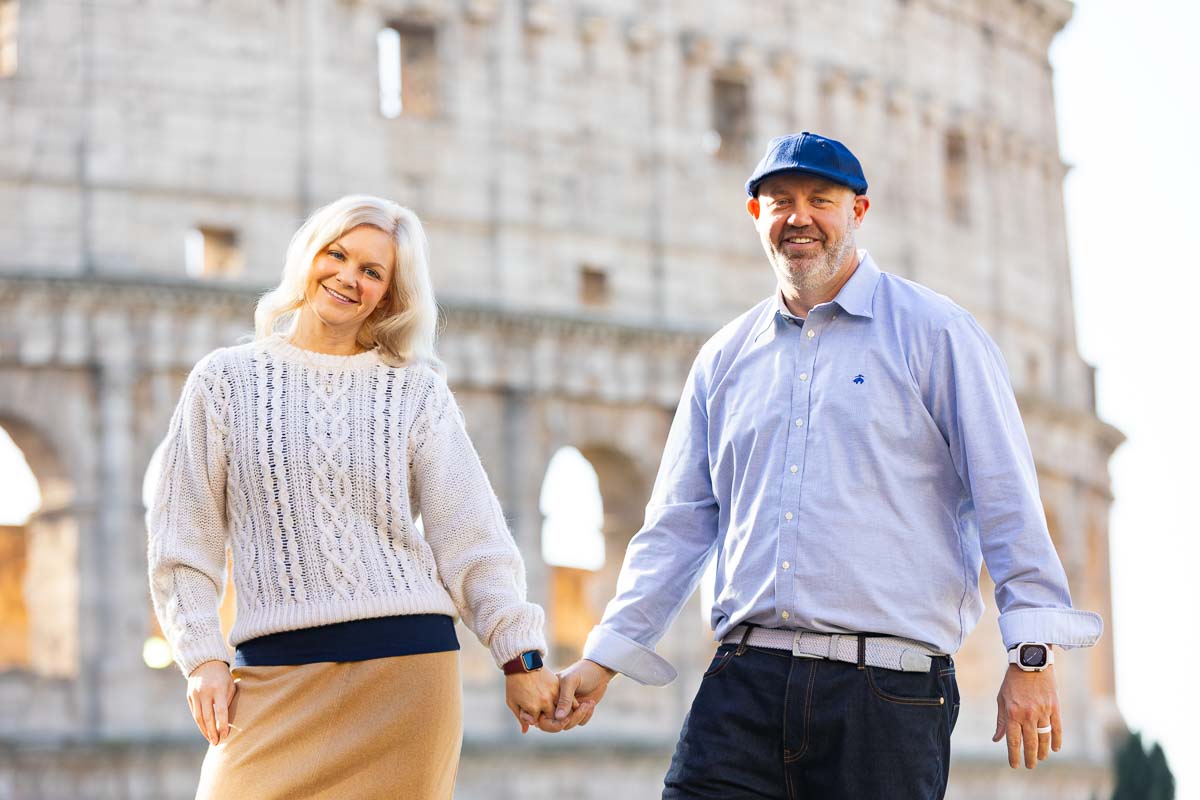 Lifestyle photography session from the Colosseum to the Pincio Terrace outlook. Natural portraits, warm light, and timeless roman city views