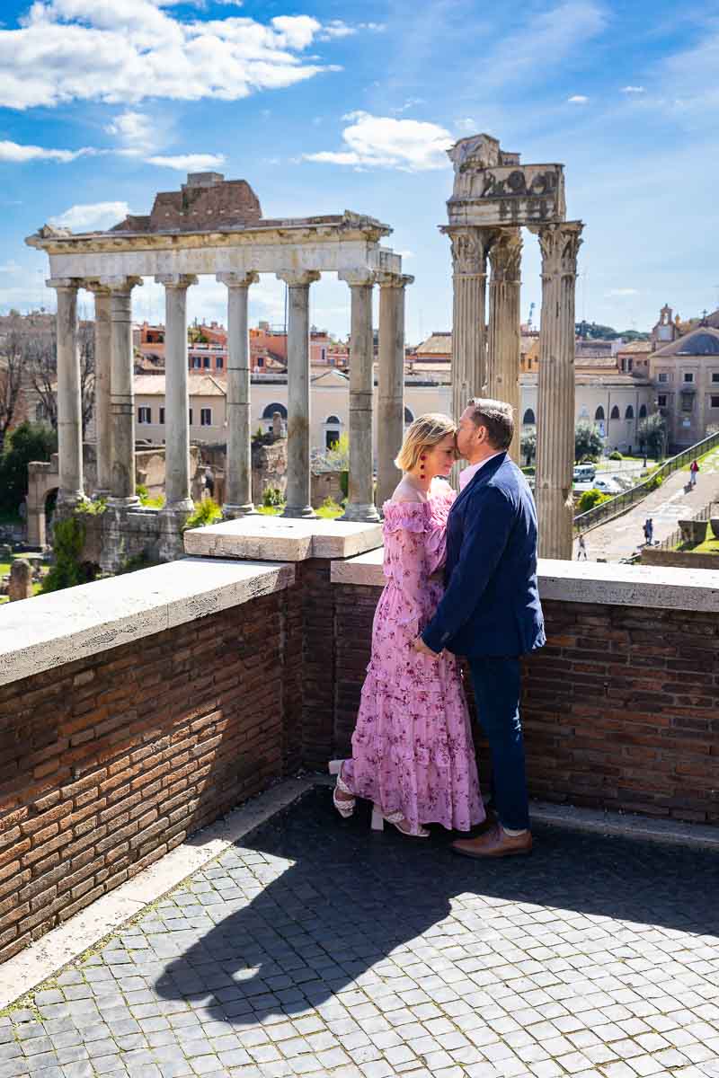 Full view. Couple photography at the Roman Forum. Rome. Italy.