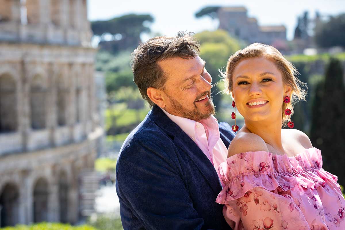 Closeup image of a couple photographed at the Coliseum in Rome during an engagement photoshoot