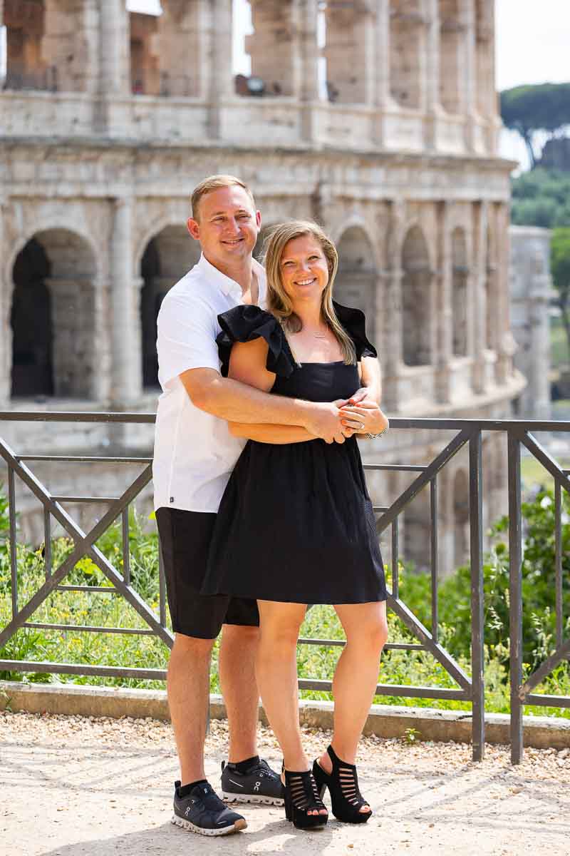 Our last photo shooting location was the Roman Colosseum. Seen from a side hill found in a small park on the Oppio hill. Enabling us to take some remarkable pictures with the iconic landmark without all the crowds that usually gather around the monument. Ending this wonderful Rome Surprise Proposal Photography with some final portrait pictures shot on a marble bench!