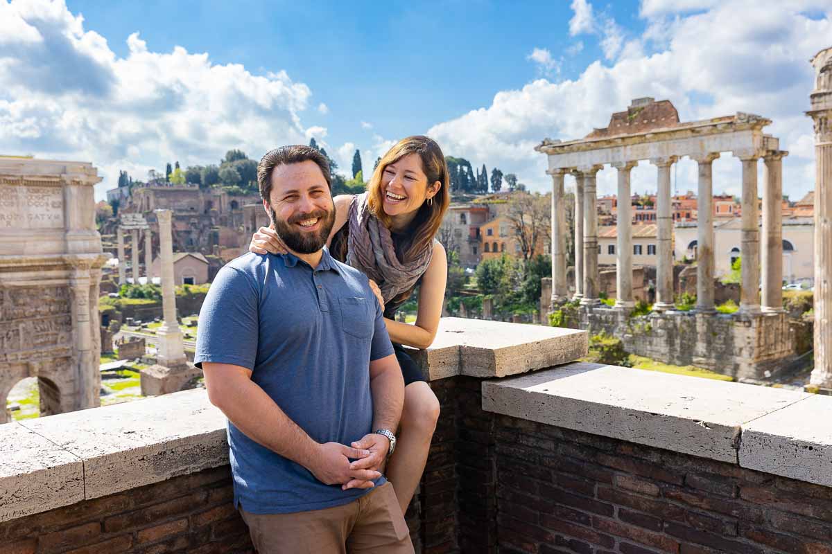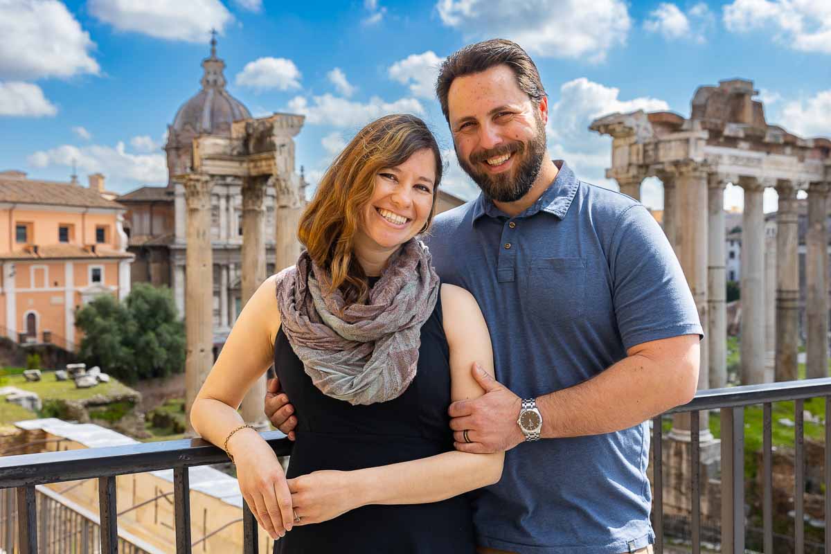 Proposing in a truly roman atmosphere among ancient columns and artifact. Then on a creative and unique engagement photoshoot around the city