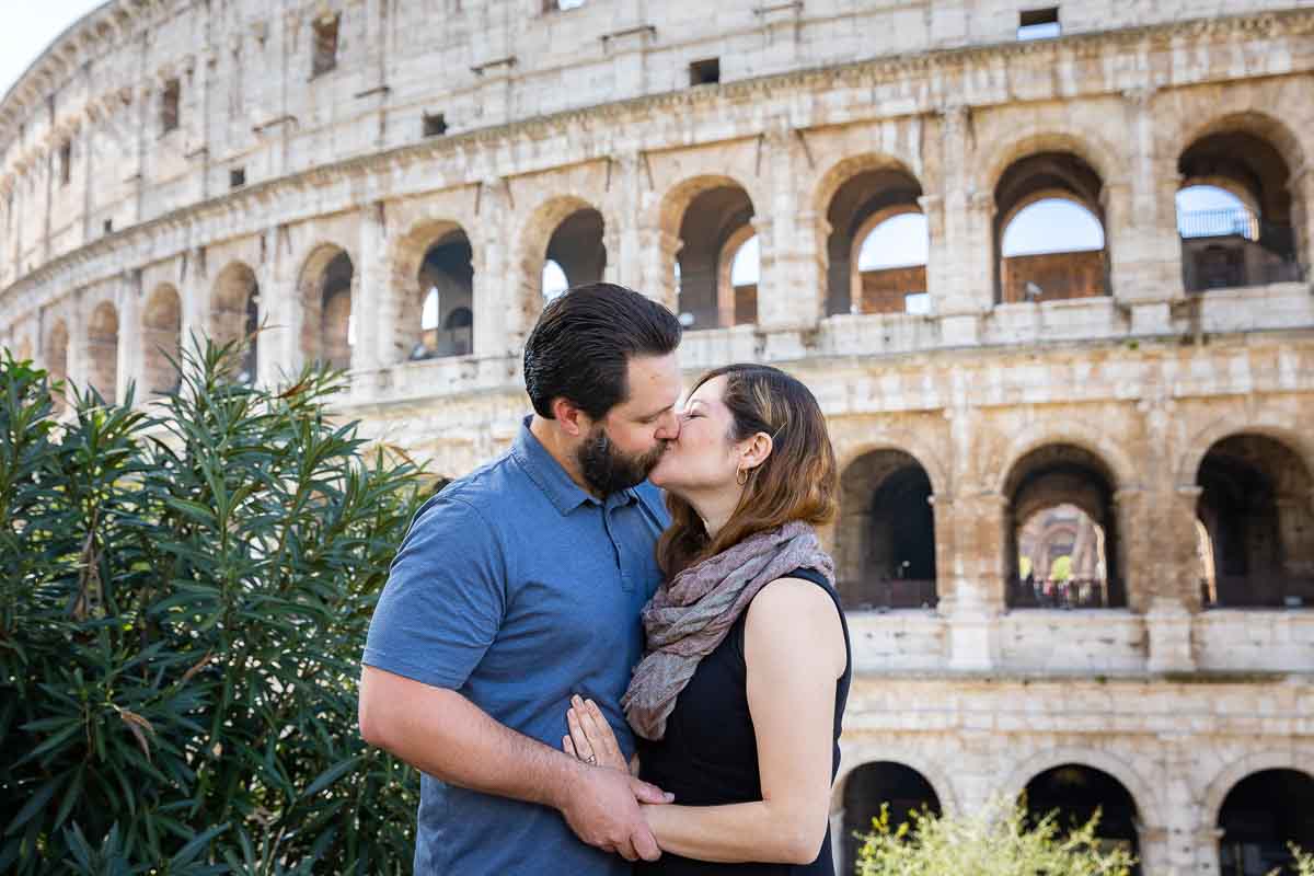 Proposing marriage at sunset by the Colosseum captured in discreet photography and videography together with engagement photos in the environs