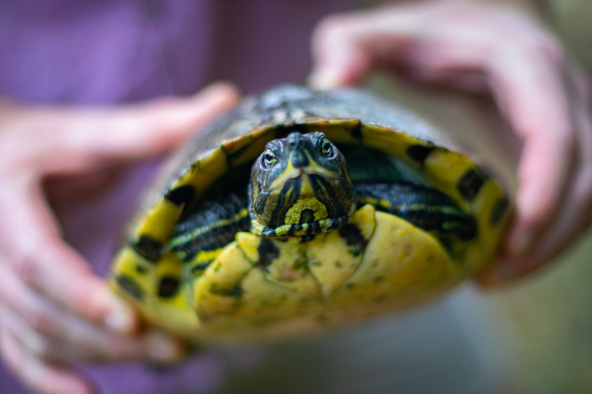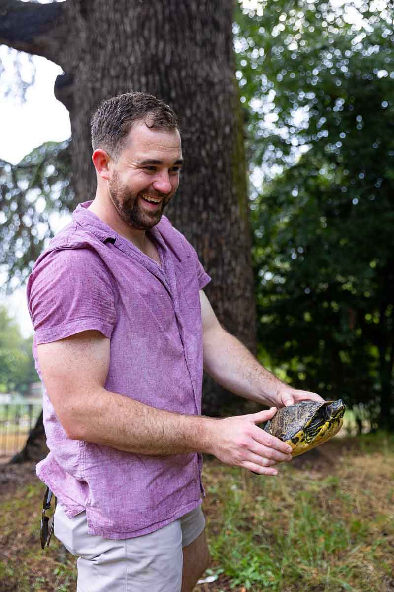 After the rain had quieted down. We walked back to the lake to finish our engagement photos. And to help the turtle find its way back to the lake!