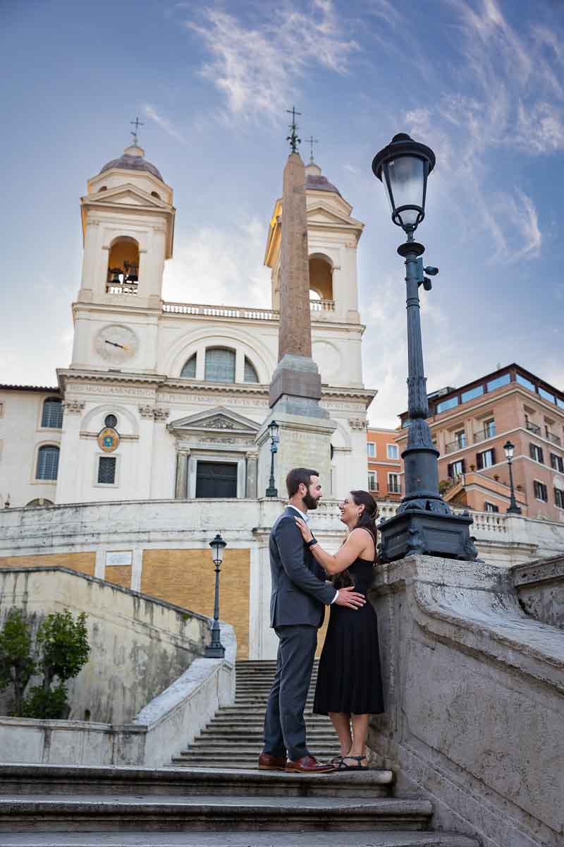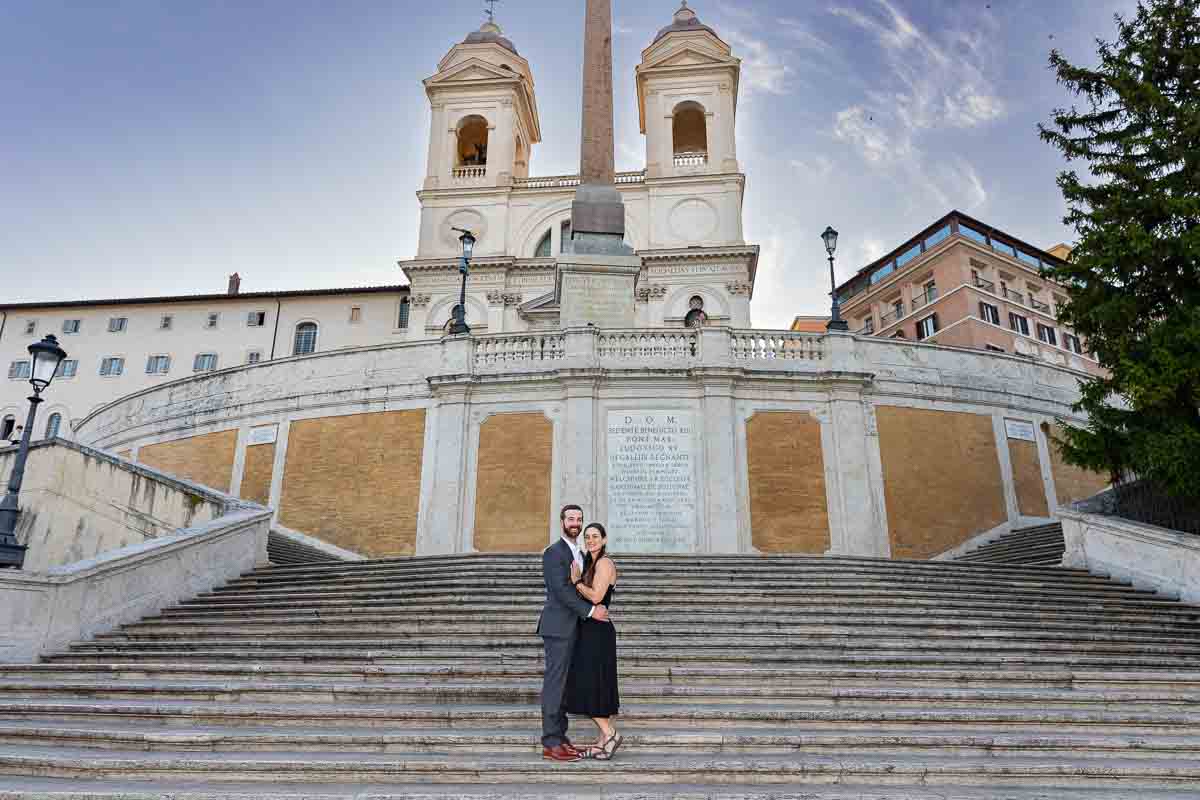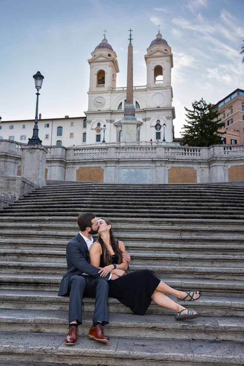 Posed couple Spanish steps in Italy