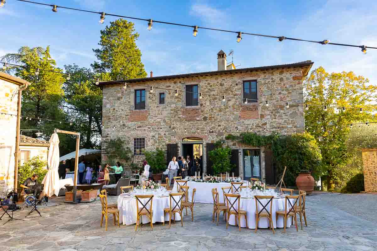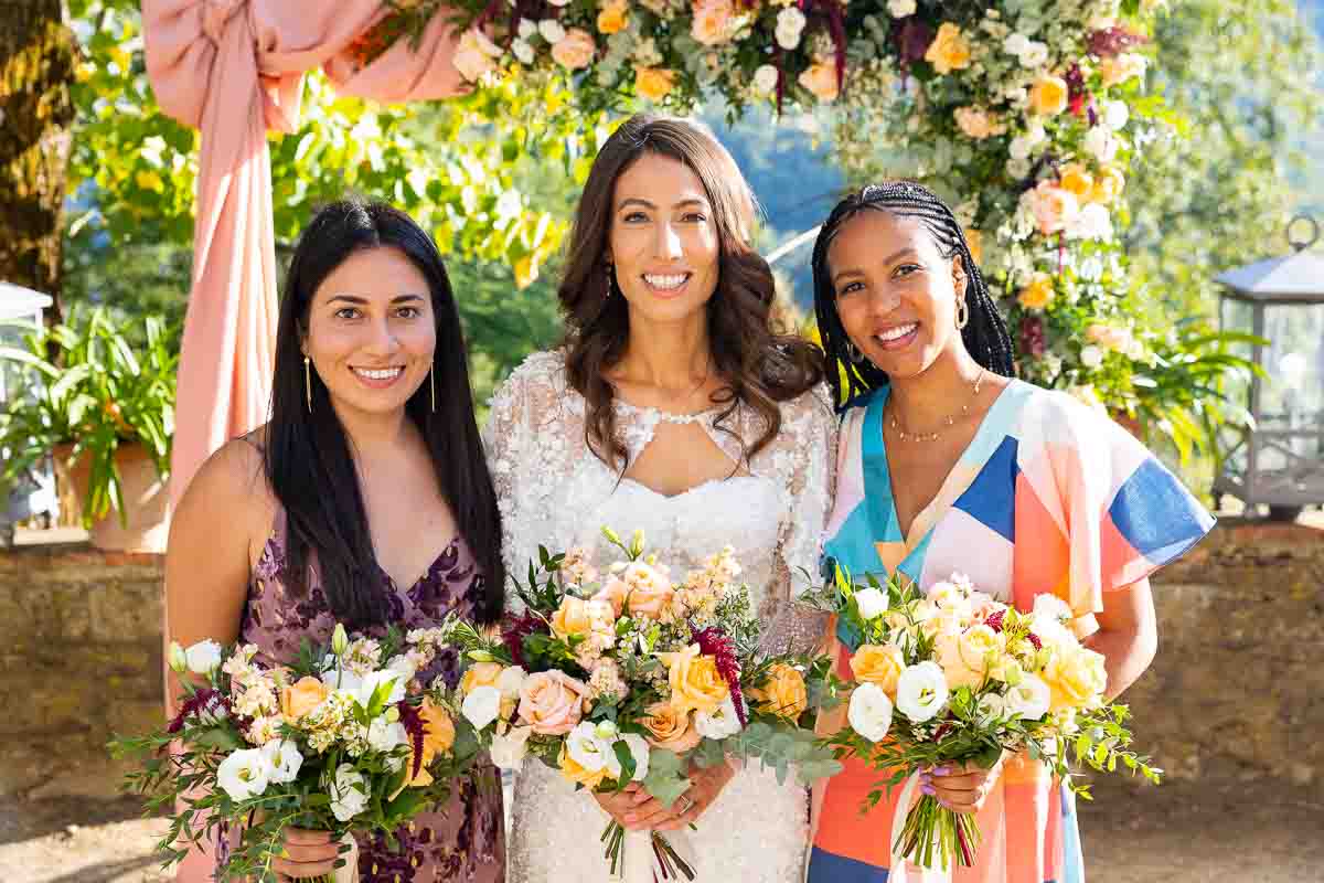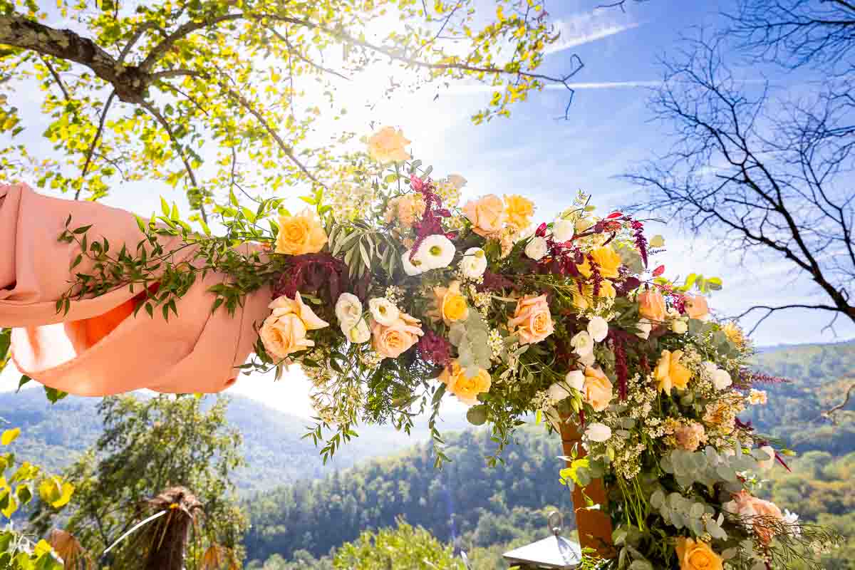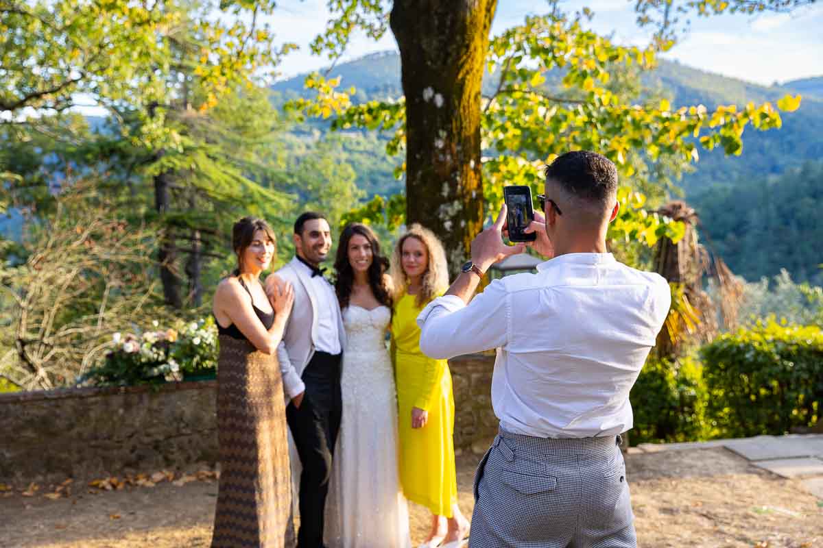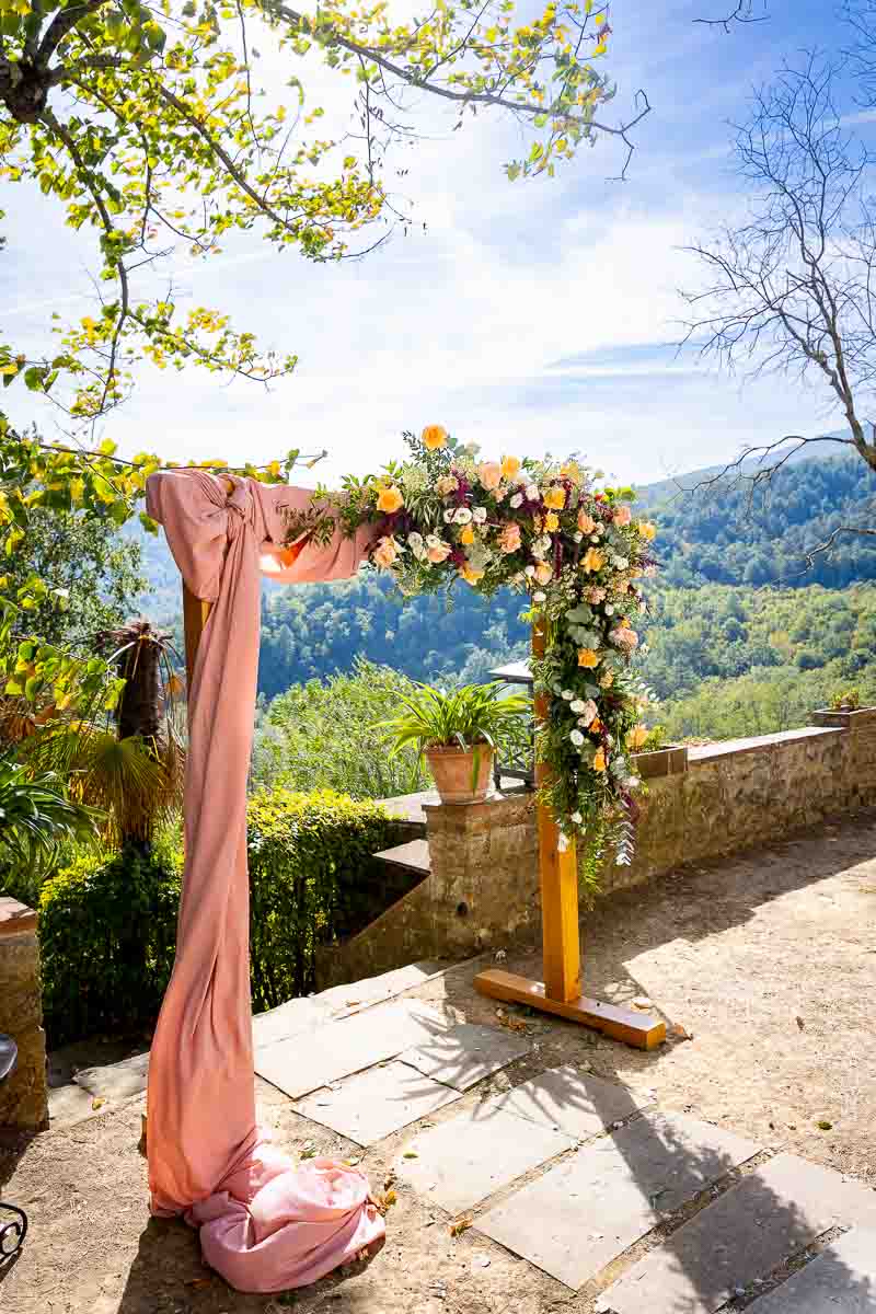 It was an enchanting ceremony. Taking place in the small countryside yard with an intimate gathering of close friends and family. Underneath a beautiful arch of flowers. Surrounded by the tuscan hills and greenery. Celebrated by a friend celebrant which made it extra special! The exchange of the vows and of the rings was heartfelt. And the newlyweds were welcomed by lots of joy and happiness. Under a cascade of confetti thrown from above by the participating guests. After the event, we gathered together to take family pictures with the Tuscany Photographer before venturing out with the bride and groom to take newlywed Tuscany wedding photography in around the estate!