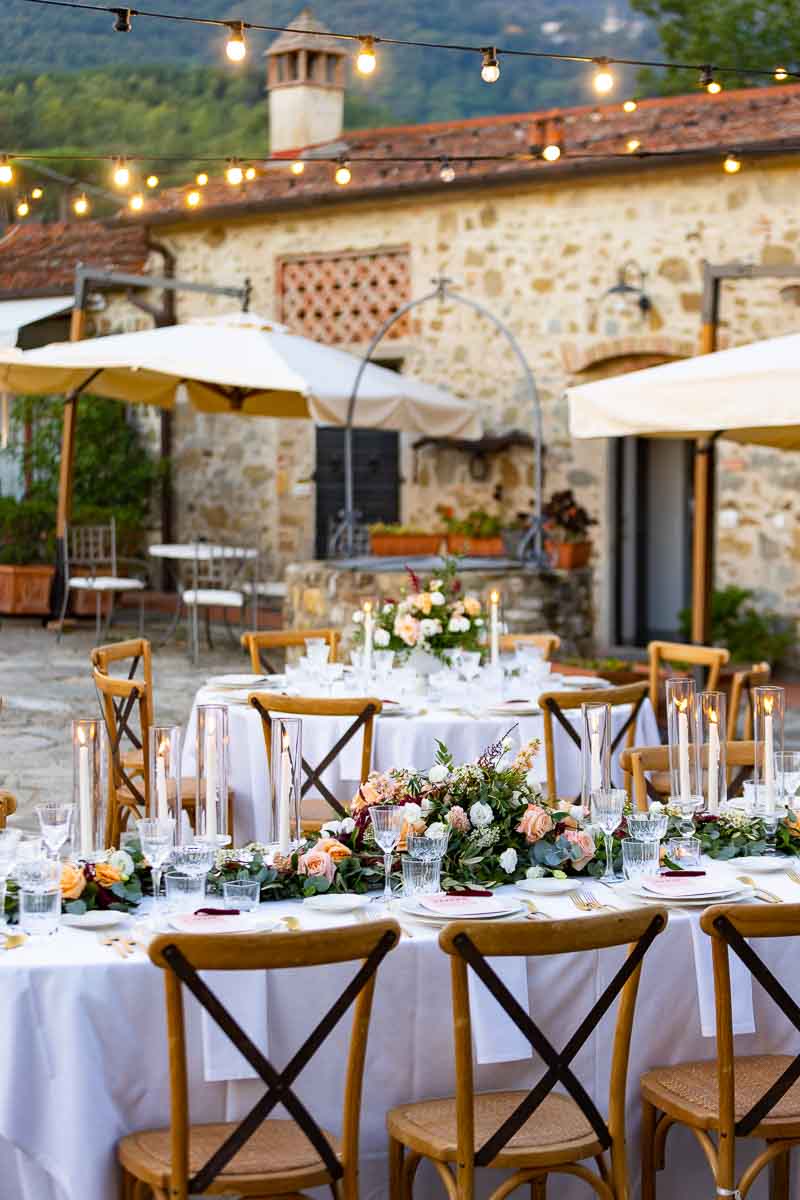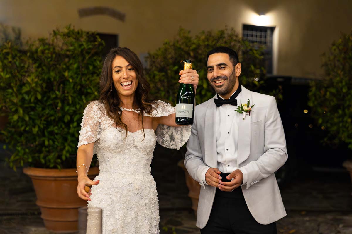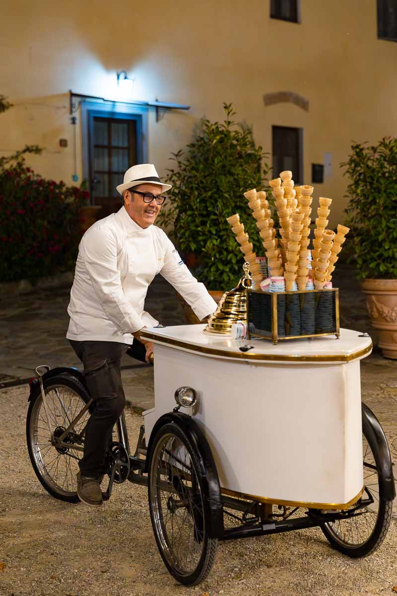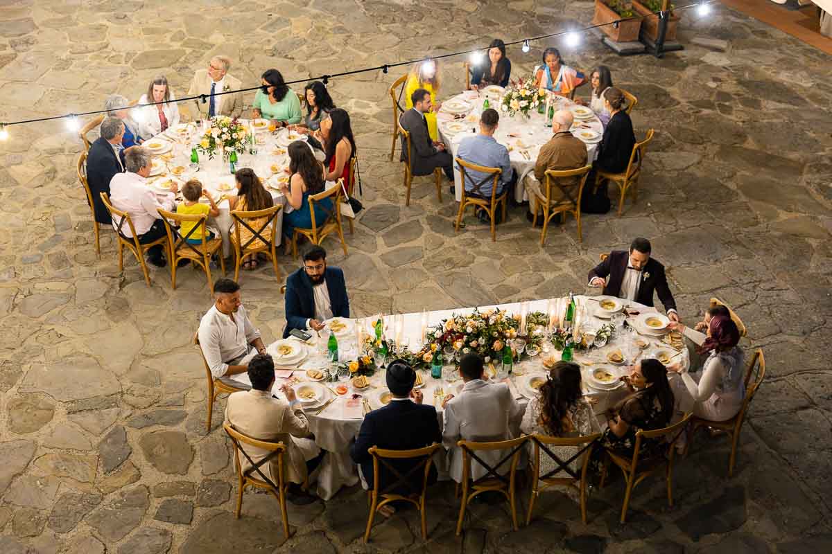 The reception was absolutely fantastic! Full of events and beautiful set ups. First it started with the refreshments and typical Italian soft drinks. Served in colorful small glass bottles which looked like collector’s items! Then after a small break, dinner began in the beautiful courtyard. With suggestive candle lit tables. Waiting for the bride & groom to arrive in a running entrance!