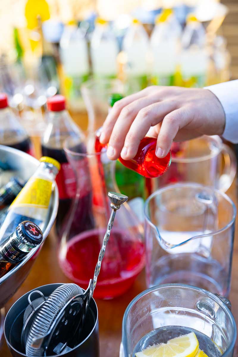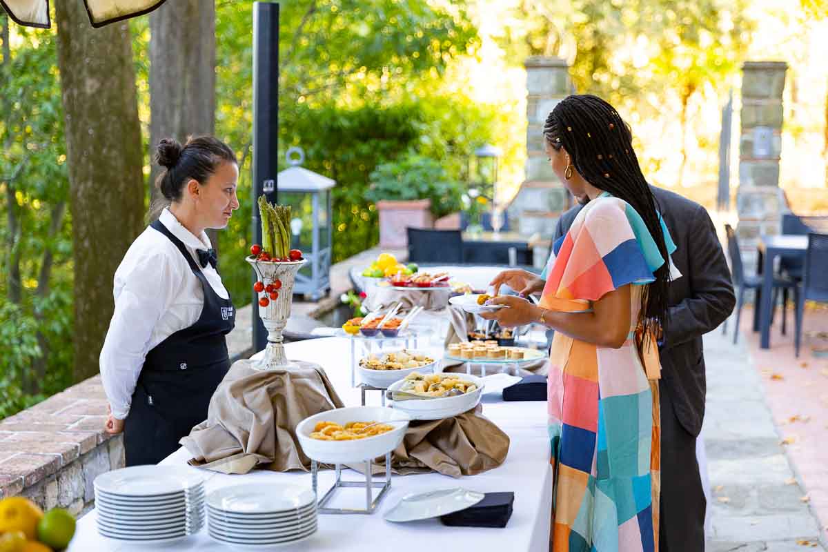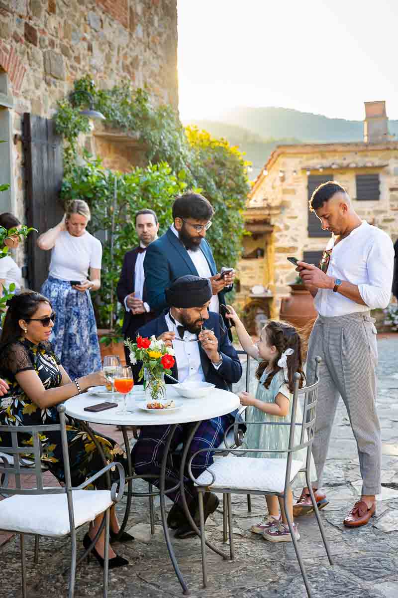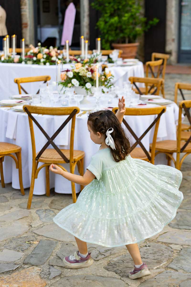 The reception was absolutely fantastic! Full of events and beautiful set ups. First it started with the refreshments and typical Italian soft drinks. Served in colorful small glass bottles which looked like collector’s items! Then after a small break, dinner began in the beautiful courtyard. With suggestive candle lit tables. Waiting for the bride & groom to arrive in a running entrance!