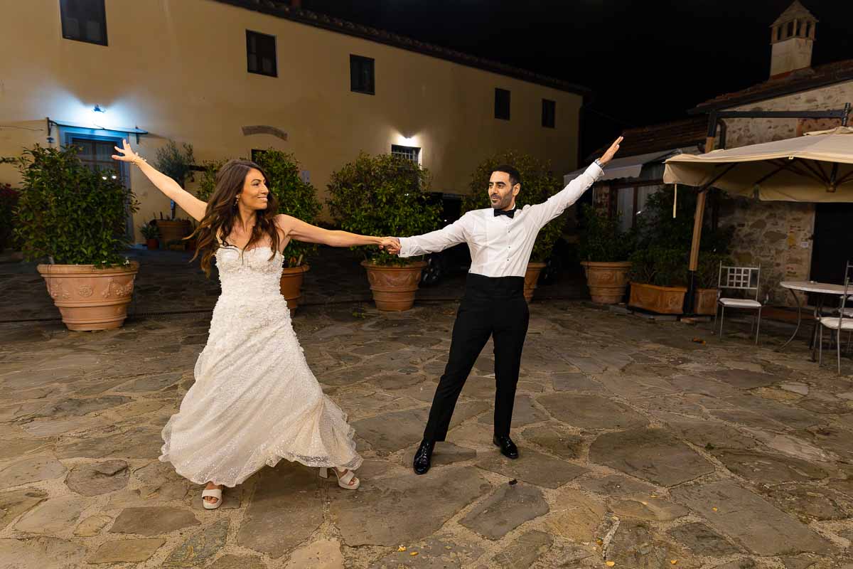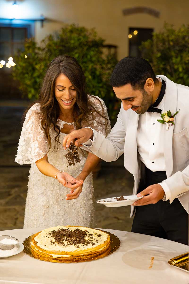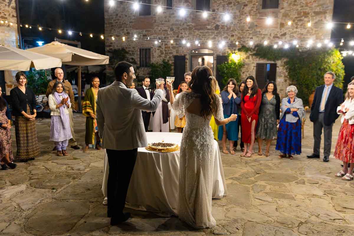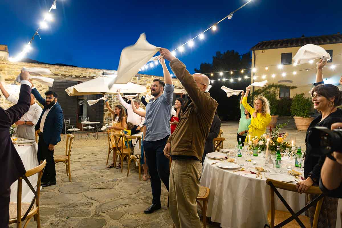 And then dinner followed with lots of fun and enjoyment. Alternating servings in between heartfelt speeches. And unique and fun scavenger hunt games. Getting everyone ready for the just married coupe to cut the cake before making it live in front of all the guests! Ending this marvelous Tuscany wedding photography with the last dance and a typical Scottish group dance which brought in a lot of fun and laughter in trying to reproduce all the dancing moves!